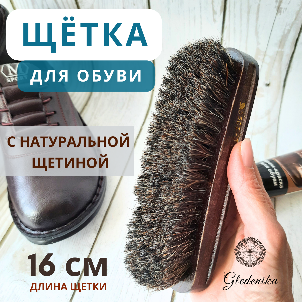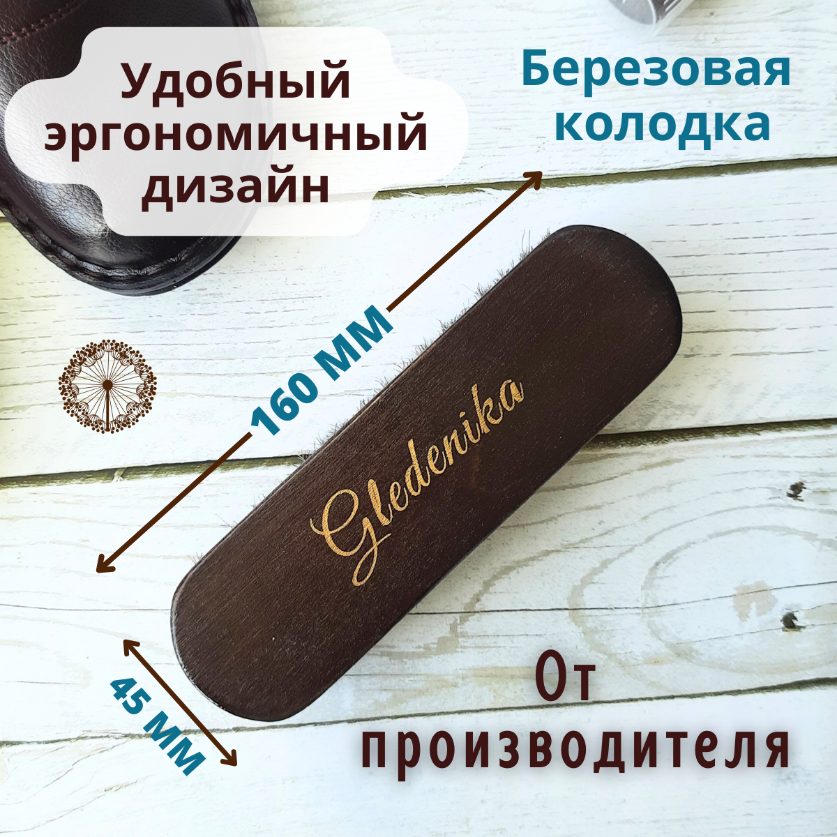 Gledenika/ Щётка для обуви и одежды 160х45мм, мягкая, из конского волоса, с деревянной колодкой/Для чистки и полировки/Универсальная интересное: