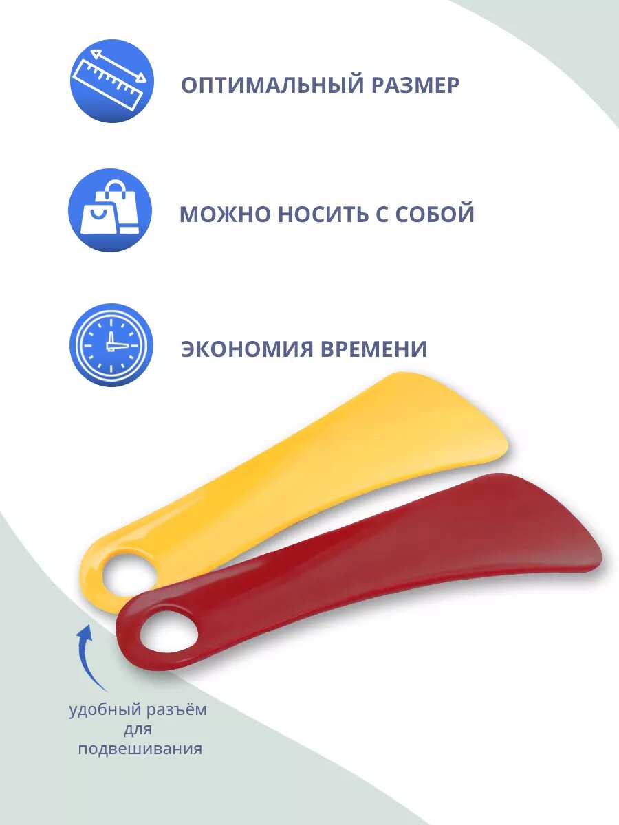 Рожок для обуви 12см, 2шт. цвет желтый, красный интересное: