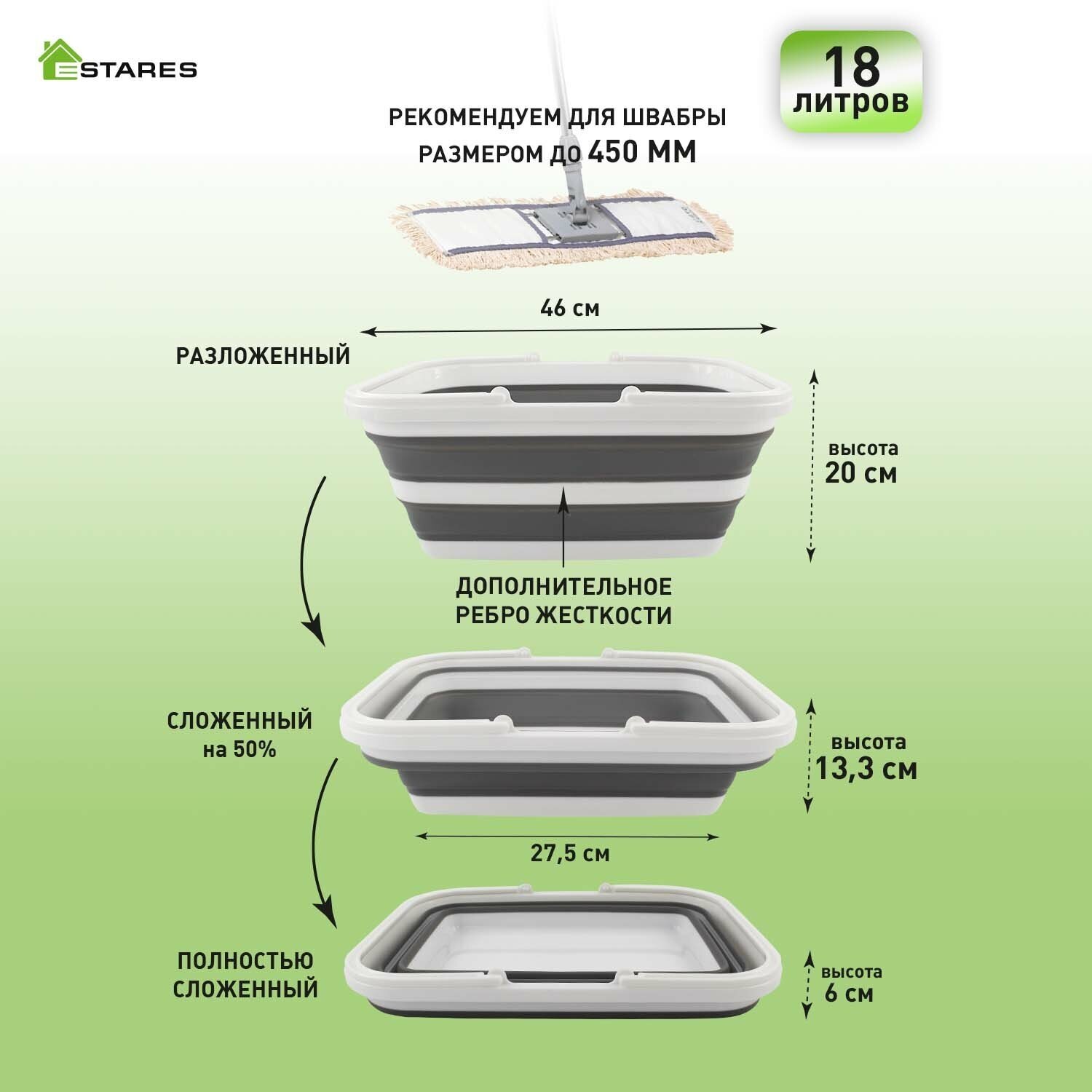 Ведро-таз складной силиконовый с ручкой 18Л- -white/gray- Estares интересное: