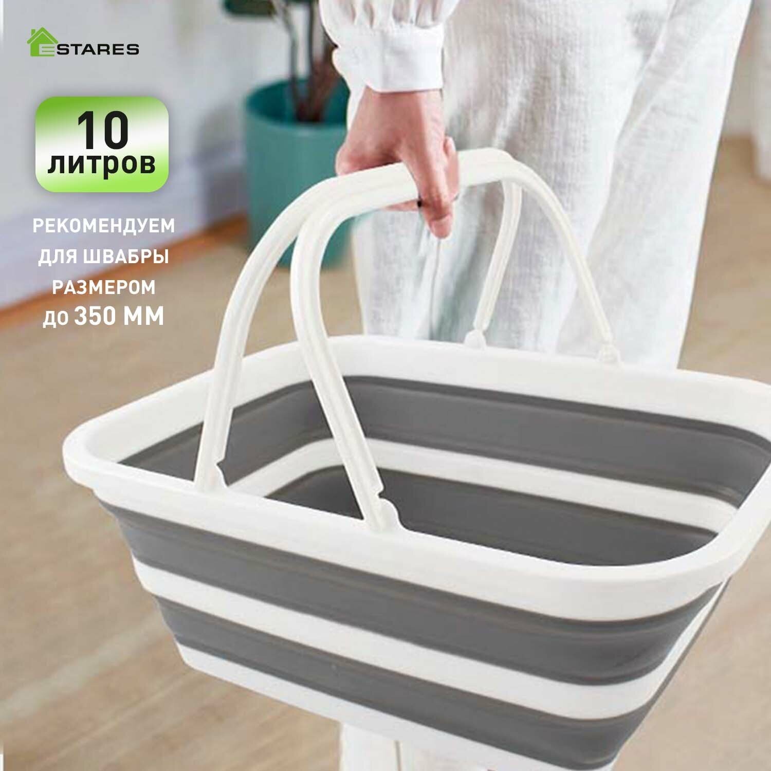 Ведро-таз складной силиконовый с ручкой 10Л- -white/gray- Estares интересное: