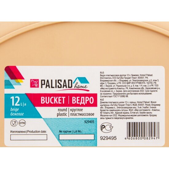 Ведро пластмассовое Palisad Home круглое 12 л бежевое 929495 интересное: