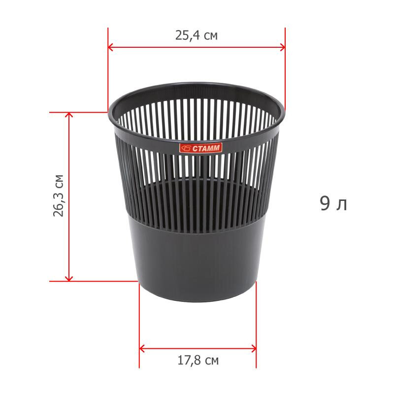 Купить Корзина для бумаг и мусора Стамм, 9 литров, пластик, сетчатая, чёрная