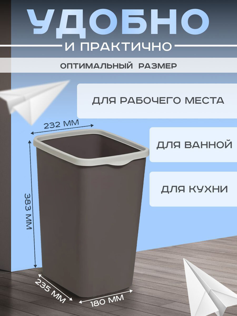 Мусорное ведро для кухни 20л с крышкой Tandem, цвет шоколад / контейнер для мусора для туалета