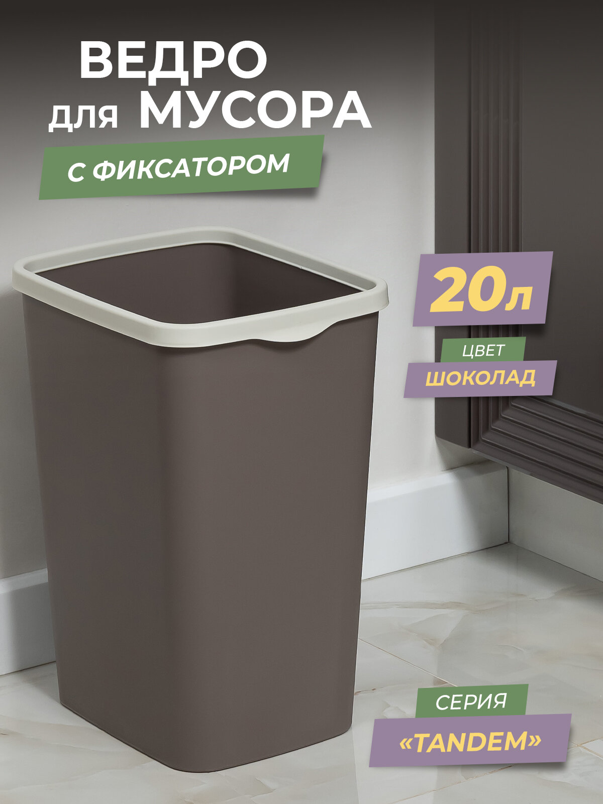 Мусорное ведро с фиксатором, набор Tandem 9л+ 20л, цвет шоколад / контейнер для мусора для туалета