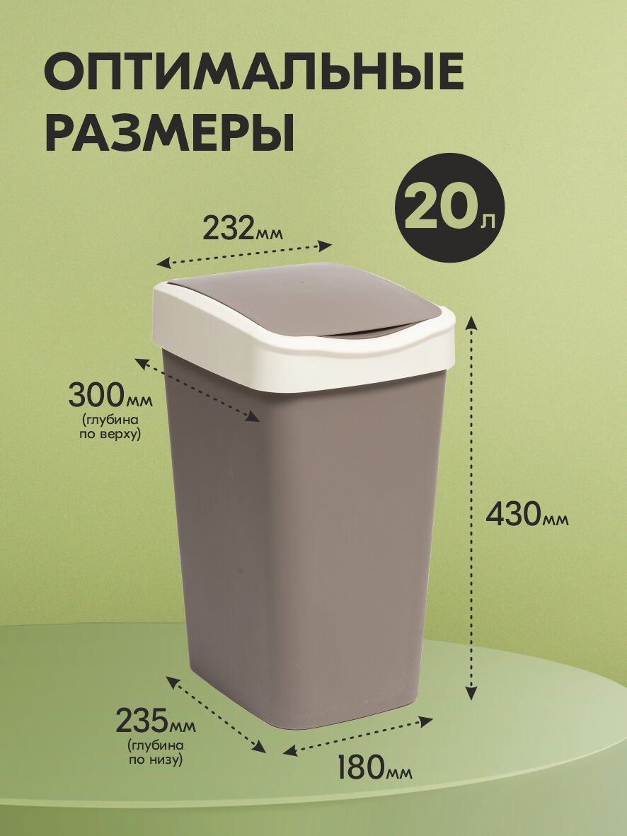 Мусорное ведро для кухни 20л с крышкой Tandem, цвет слоновая кость / контейнер для мусора для туалета