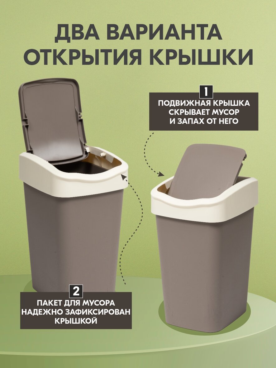 Мусорное ведро с подвижной крышкой Tandem, 20л, слоновая кость/шоколадный