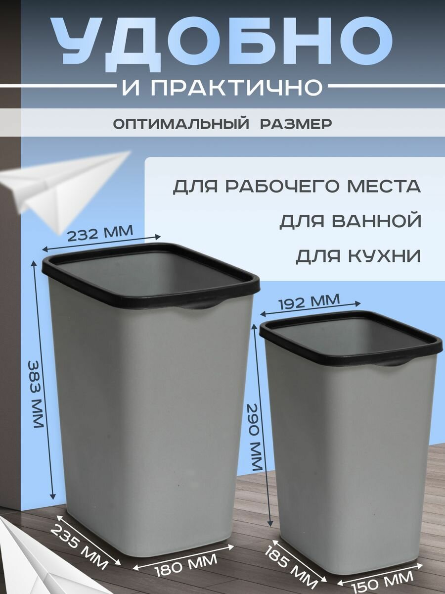 Мусорное ведро с фиксатором, набор Tandem 9л+ 20л, цвет серый металлик / контейнер для мусора для туалета