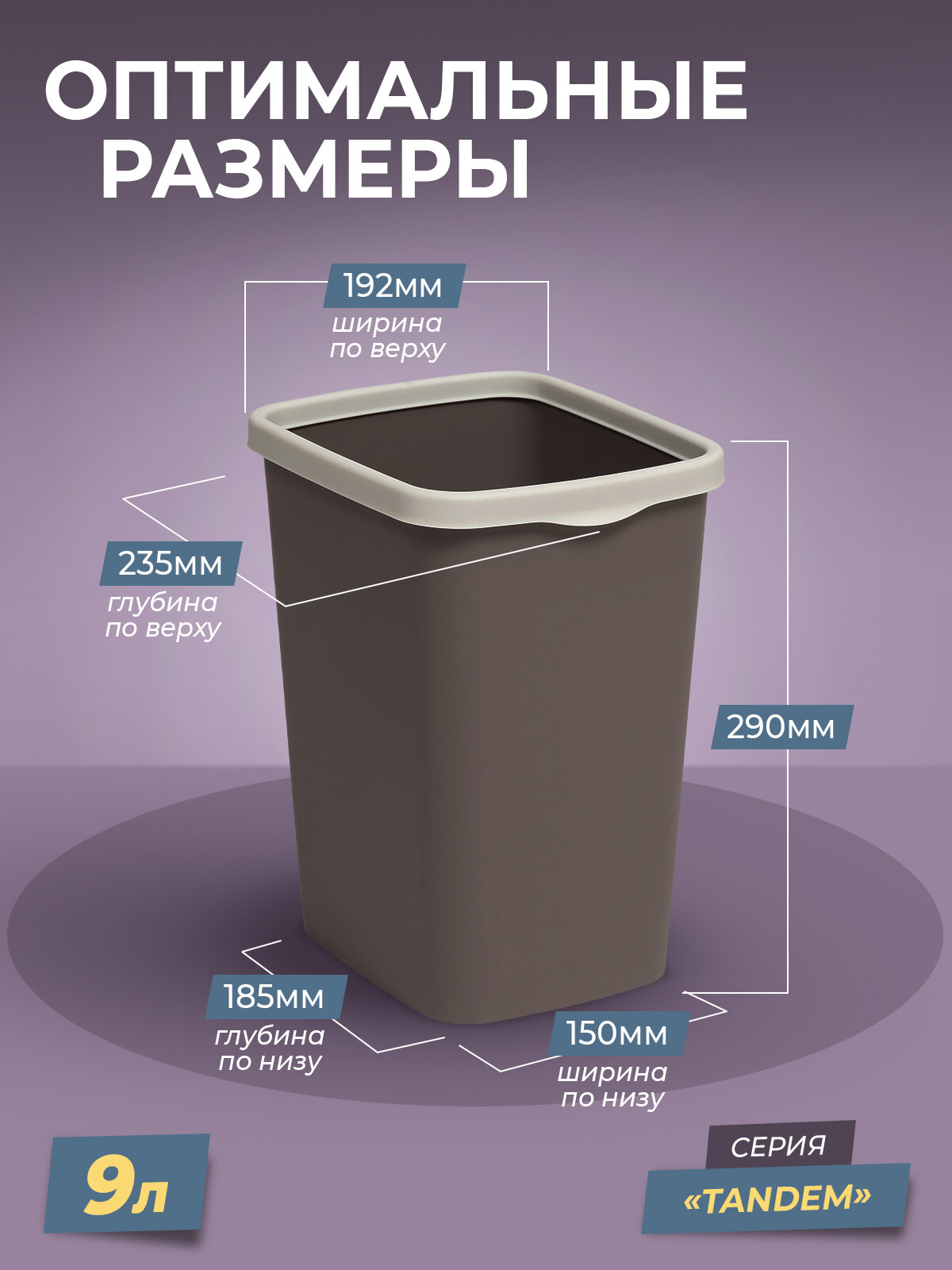 Купить Мусорное ведро с фиксатором, набор Tandem 9л+ 20л, цвет шоколад / контейнер для мусора для туалета