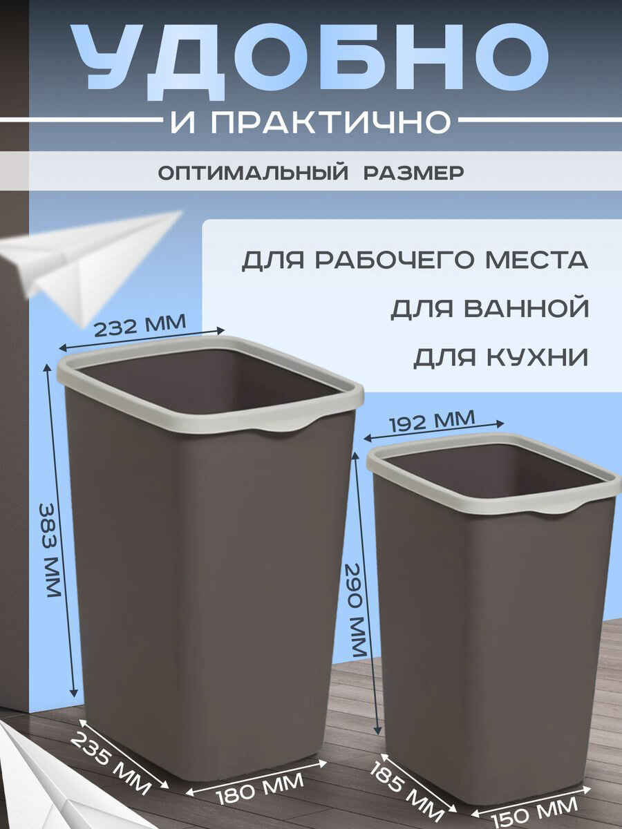 Мусорное ведро с крышкой, набор Tandem 10л+ 20л, цвет шоколад / контейнер для мусора для туалета
