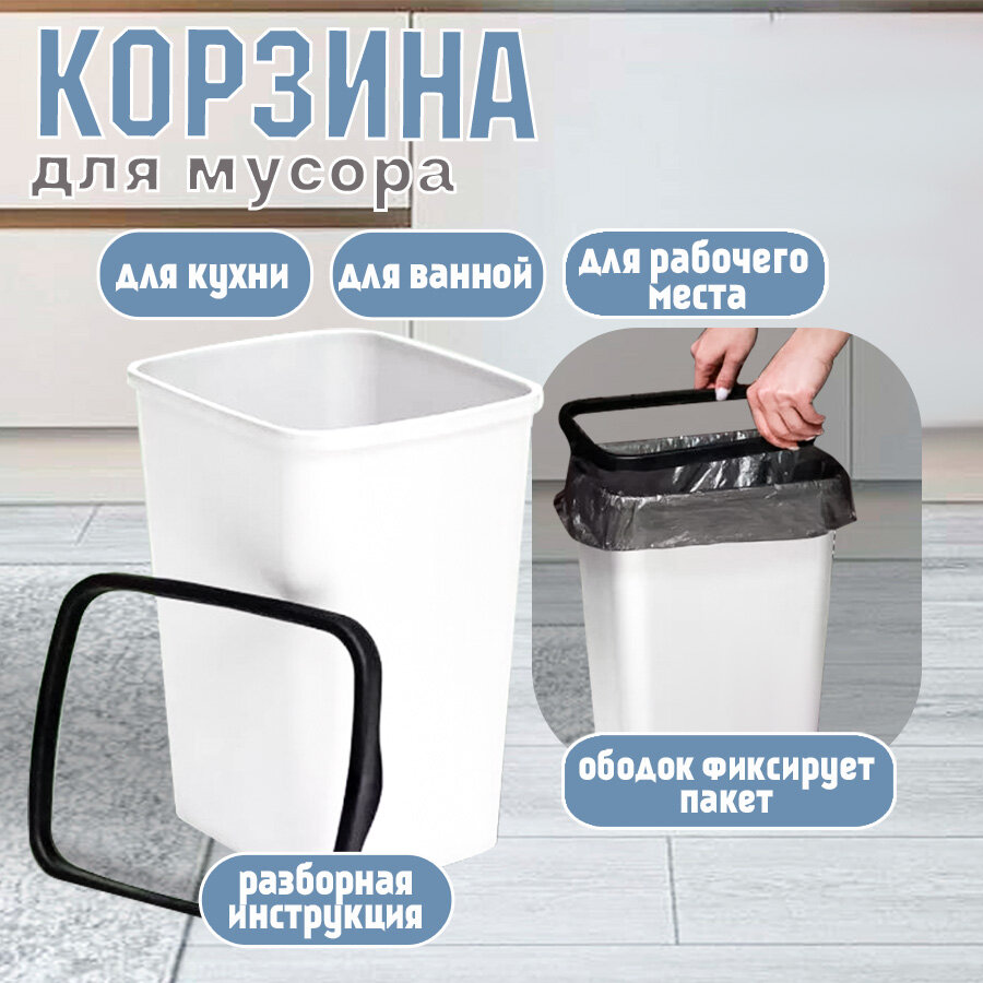 Мусорное ведро для кухни 9л с фиксатором Tandem, цвет белый / контейнер для мусора для туалета