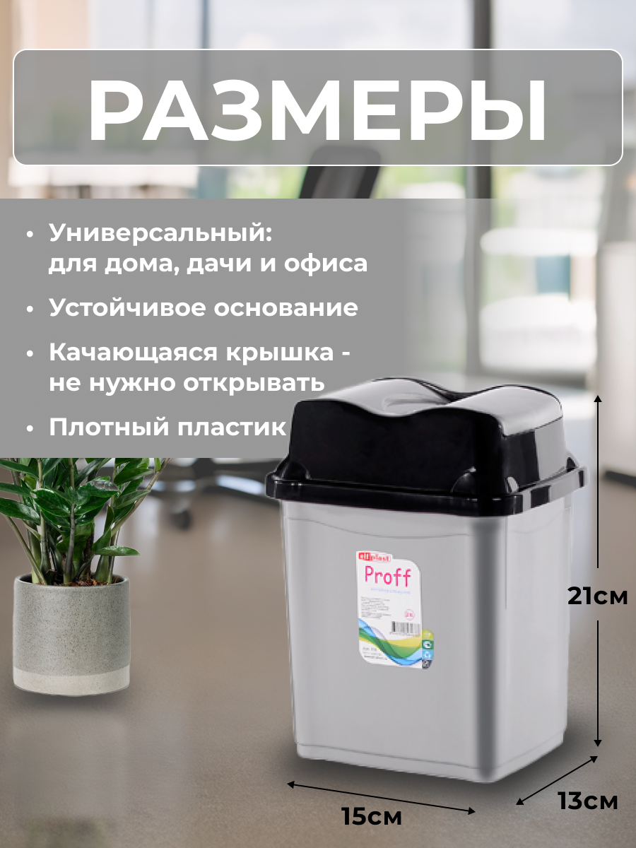 Контейнер для мусора Proff 2л. мусорное ведро настольное цвет серый/черный