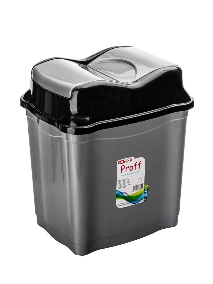 Контейнер elfplast "Proff" для мусора 5л, серый/черный 477