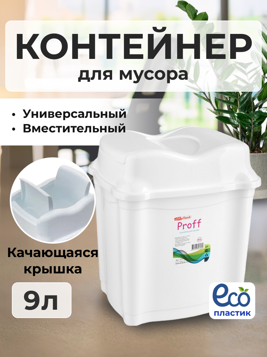 Контейнер для мусора ElfPlast Proff, белый, 9 л