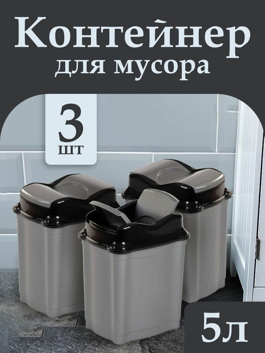 Купить Контейнер elfplast "Proff" для мусора 5л 3шт, серый/черный