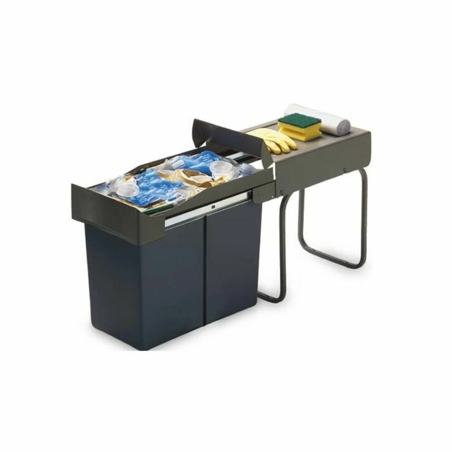Встраиваемое ведро для мусора (20л), UNIONPLAST Италия, пластик с делителем темно-серый