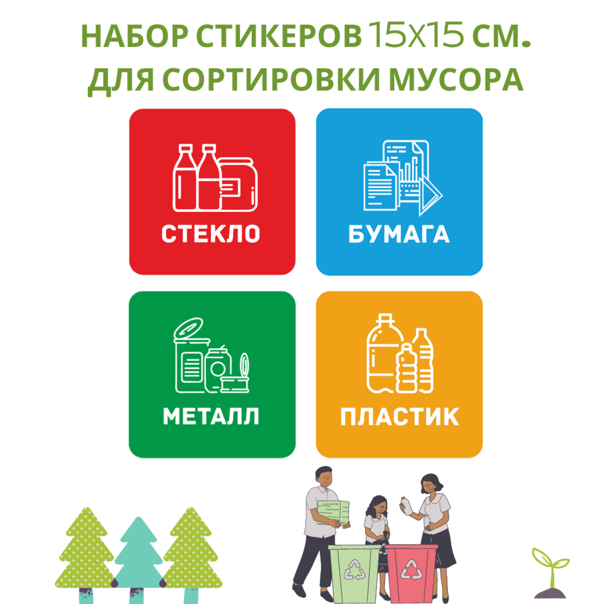 Купить Наклейки стикеры для сортировки мусора и отходов 15х15 см, 4 шт.