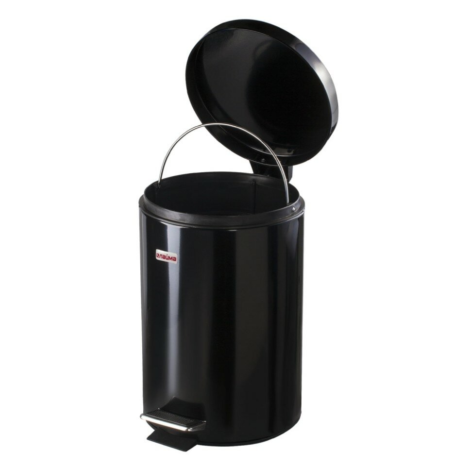 Ведро мусорное с педалью 12 литров "Classic", черное глянцевое, металлическое, со съемным внутренним ведром, LAIMA, 602850, 602850