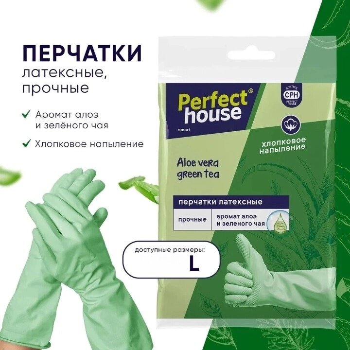 Купить Перчатки хозяйственные Perfect House Алоэ зеленый чай, размер L