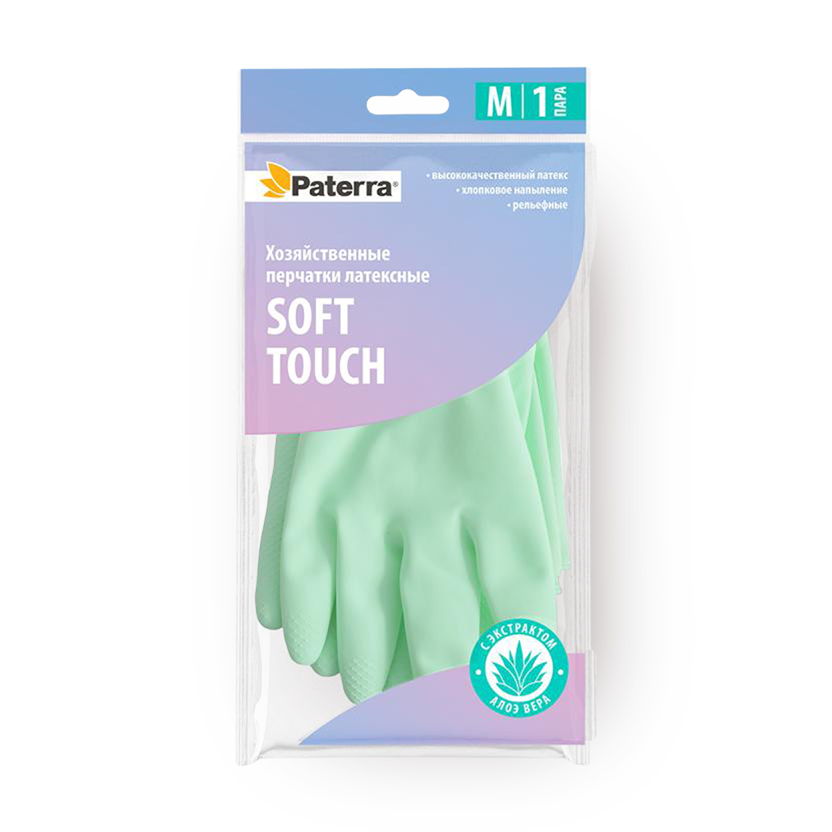 Перчатки хозяйственные, латексные, SOFT TOUCH, с экстрактом алоэ, хлопк. напыление, р-р M, PATERRA (402-932) интересное: