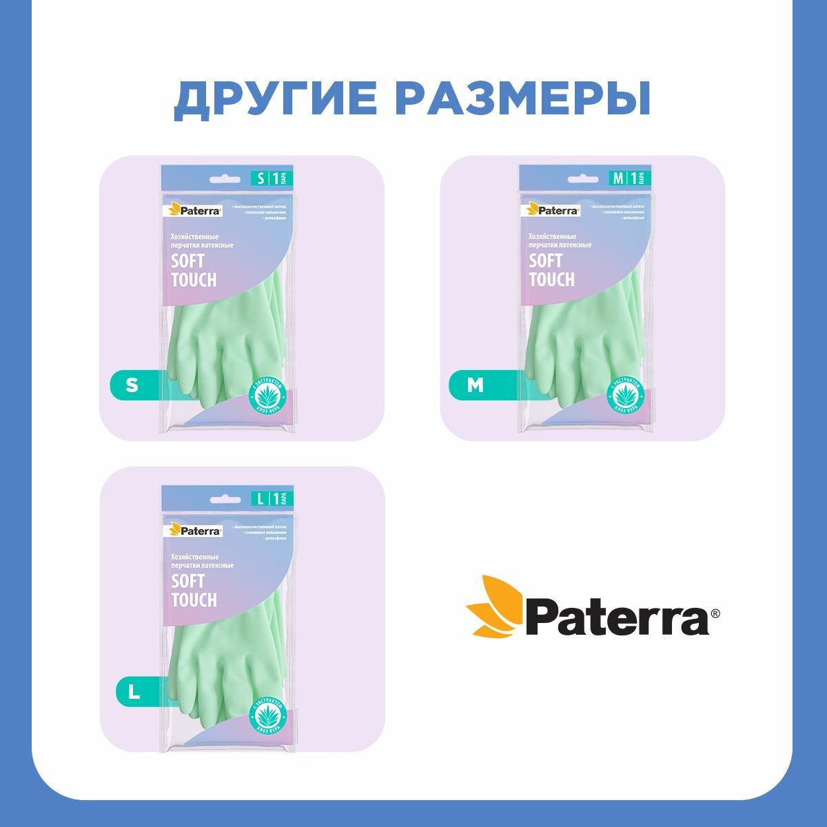 Купить PATERRA Перчатки хозяйственные, латексные, SOFT TOUCH, с экстрактом алоэ, хлопк. напыление, р-р XL, 402-934