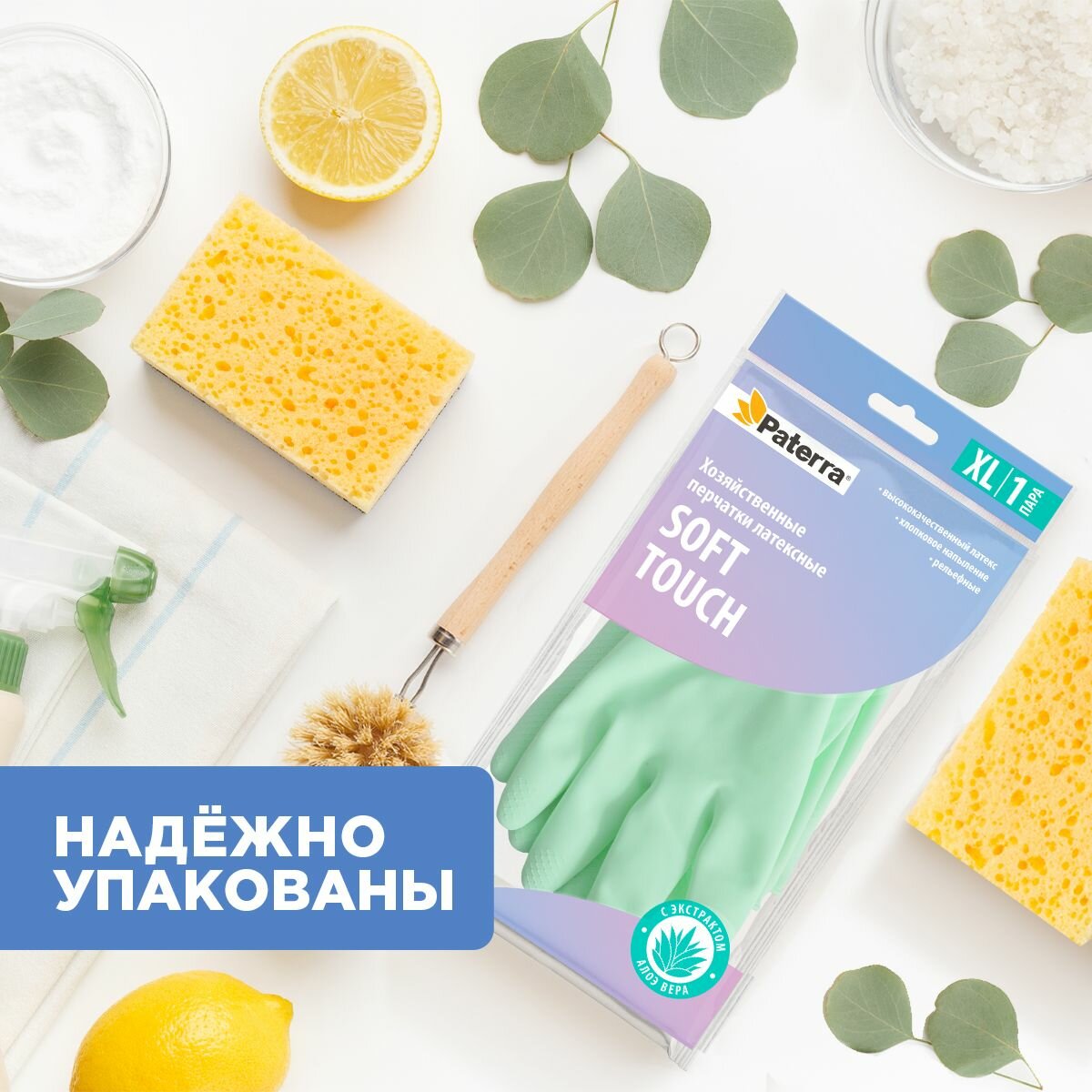 Перчатки хозяйственные, латексные, SOFT TOUCH, с экстрактом алоэ, хлопк. напыление, р-р XL, PATERRA (402-934)