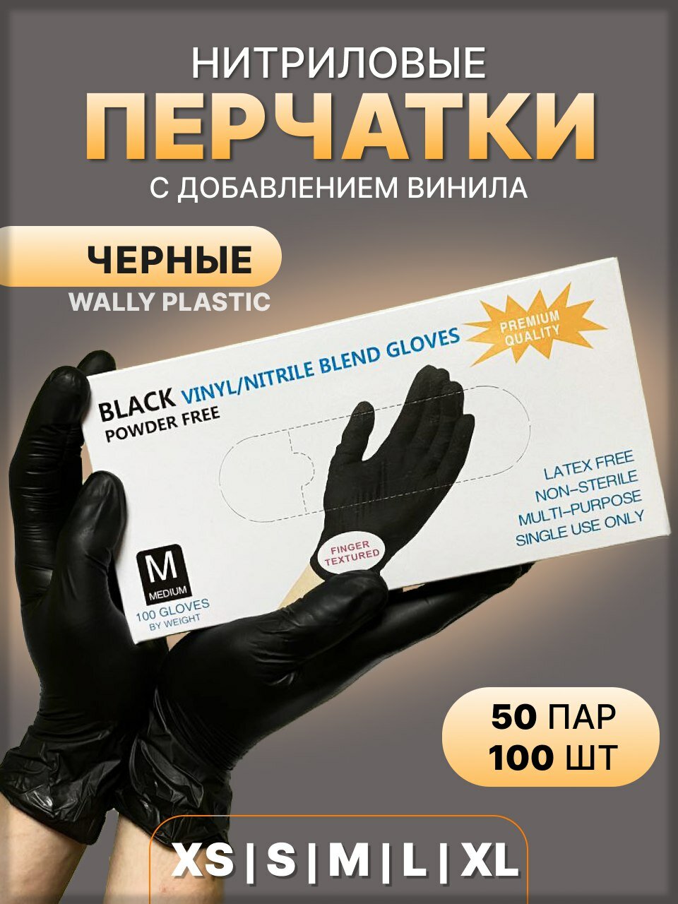 Купить Перчатки нитриловые Wally Plastic с добавлением винила размер M чёрные