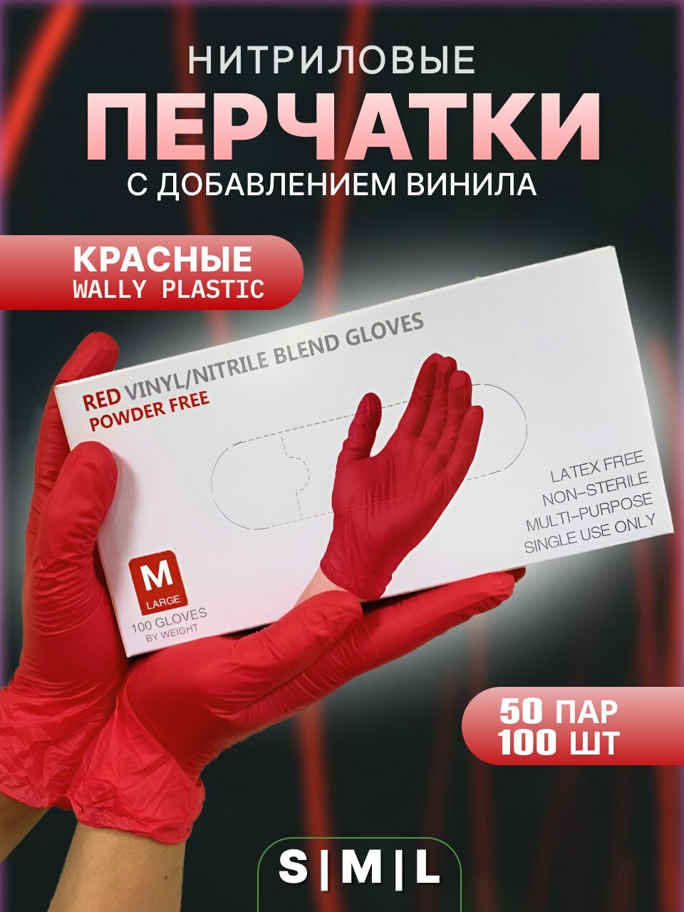 Купить Перчатки нитриловые Wally Plastic с добавлением винила размер M красные