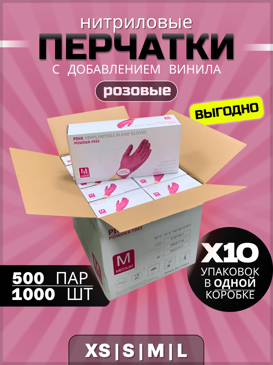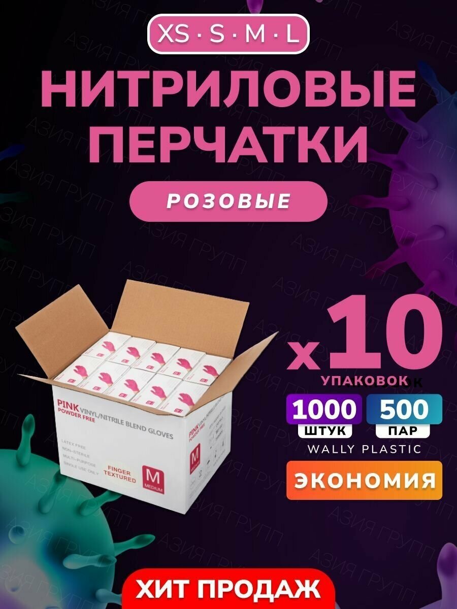 Купить Перчатки нитриловые Wally Plastic с добавлением винила размер М розовые 500 пар