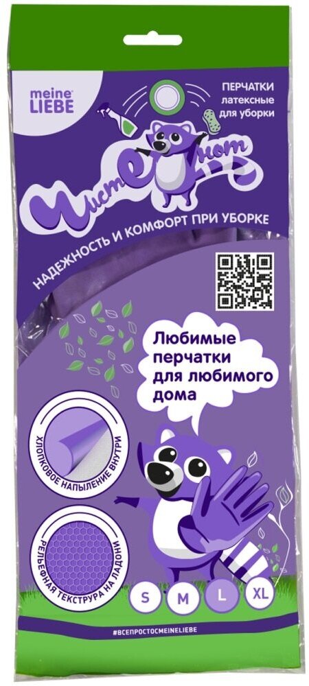 Перчатки латексные универсальные MEINE LIEBE "Чистенот" (хозяйственные) размер L, цвет сиреневый, 1 пара