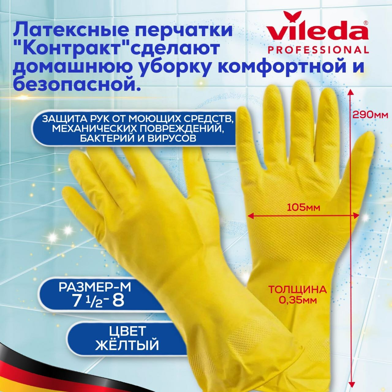 | Дополнительная информация | перчатки для уборки, перчатки Вилела Vileda, перчатки прочные |