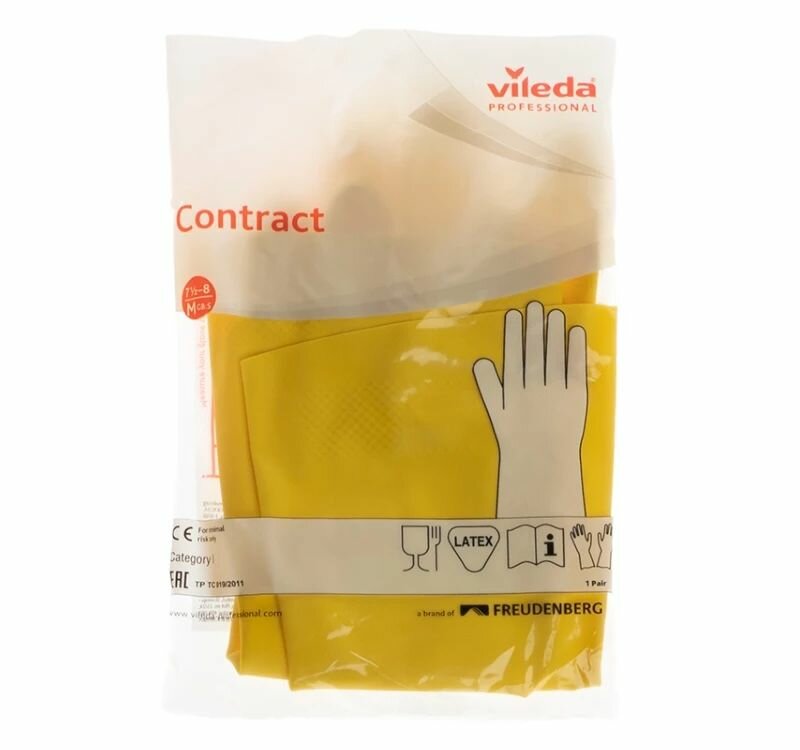 Перчатки Vileda Professional Контракт, 1 пара, размер M, цвет желтый