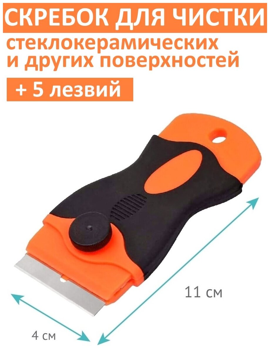 Скребок для чистки стеклокерамики стекла плитки керамических индукционных поверхностей плит окон стеклоочиститель стекломой оранжевый