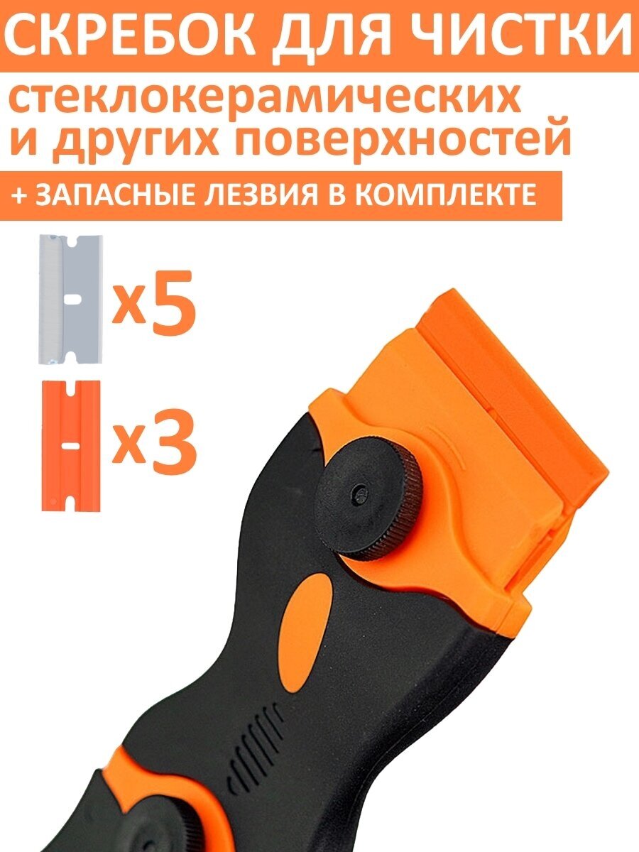 Скребок для чистки стеклокерамики стекла плитки керамических индукционных поверхностей плит окон стеклоочиститель стекломой оранжевый