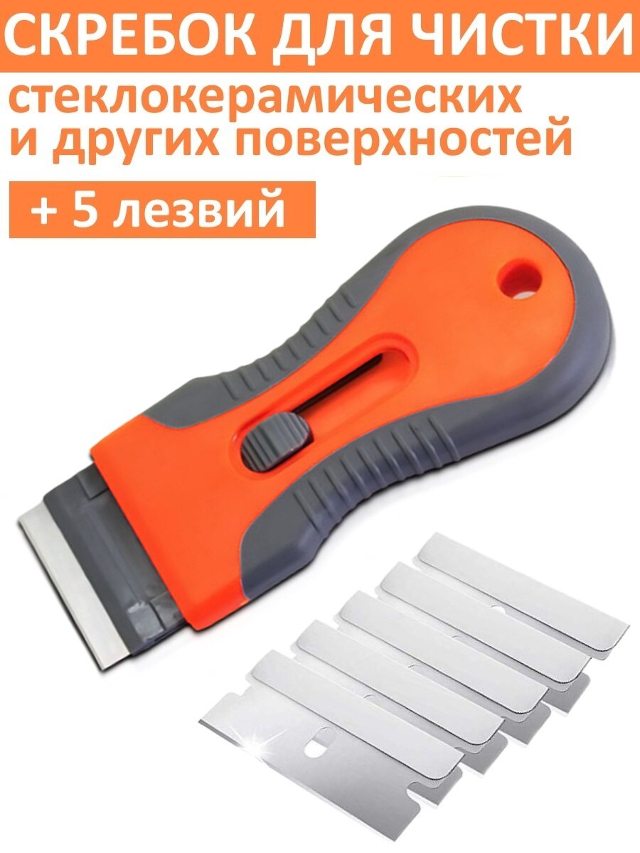 Купить Скребок для чистки стеклокерамики стекла плитки керамических индукционных поверхностей плит окон стеклоочиститель стекломой оранжевый