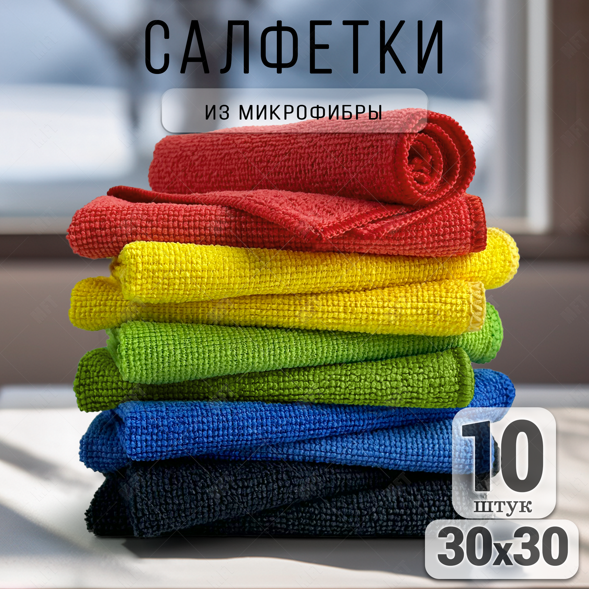 СохранитьСалфетки для уборки из микрофибры универсальные 30х30 см, 10 шт. в упаковке, цвет черный, синий, зеленый, красный, желтый интересное: