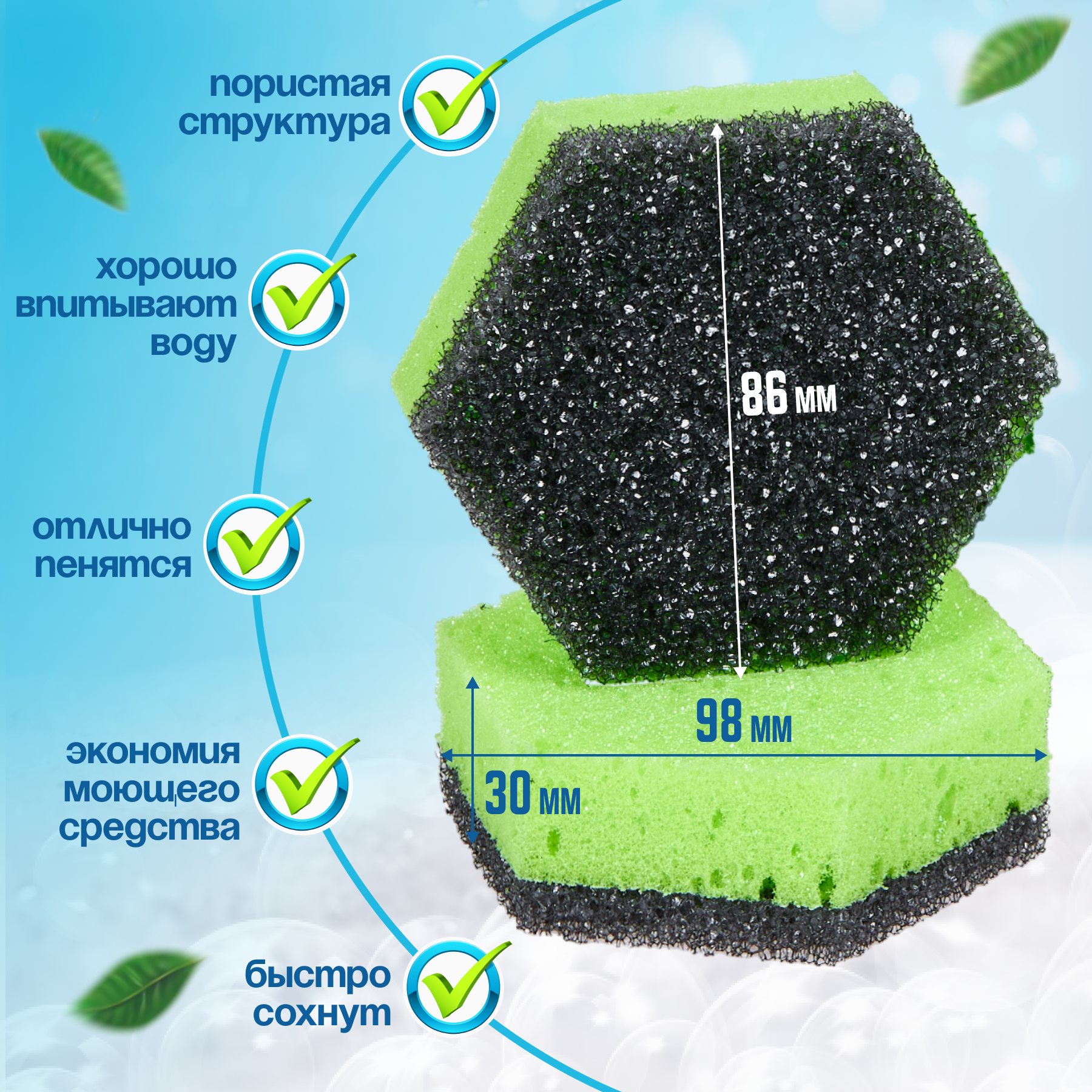 СохранитьГубки для мытья посуды SPOTLESS, шестиугольные, 6 шт, зеленые интересное: