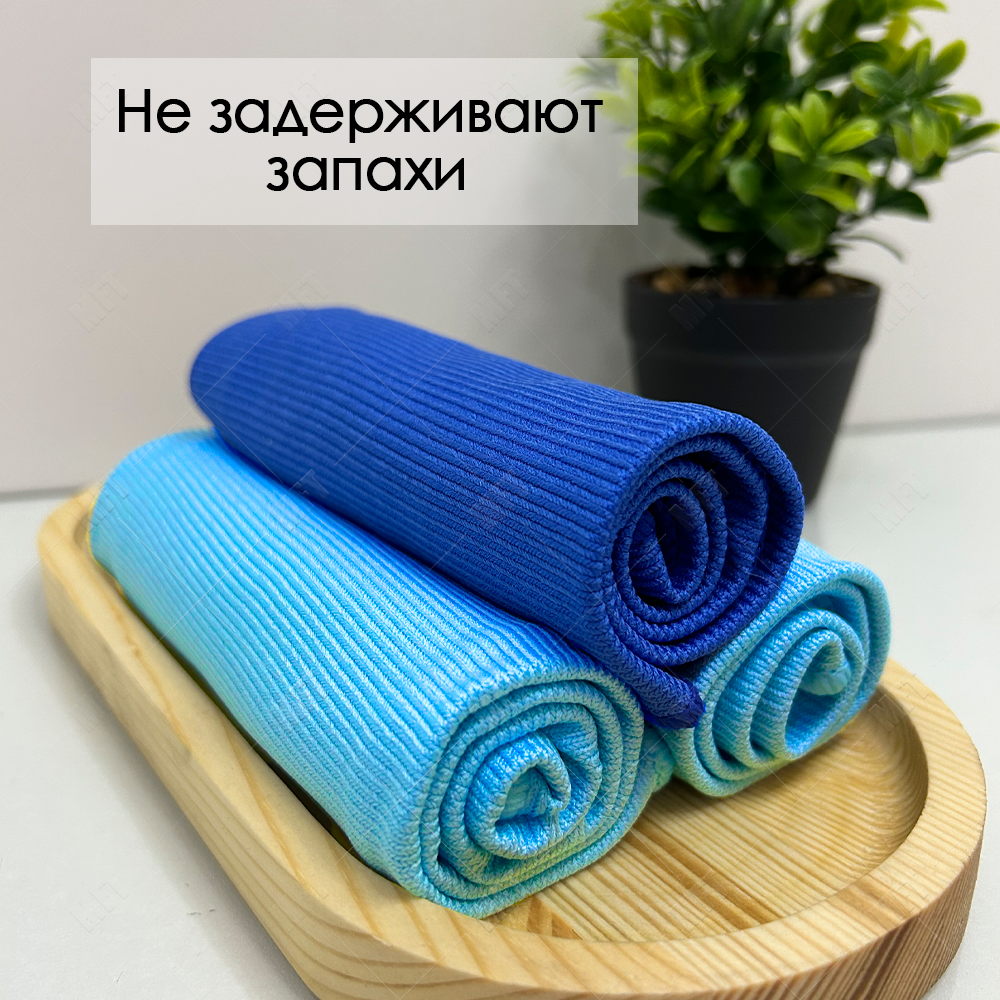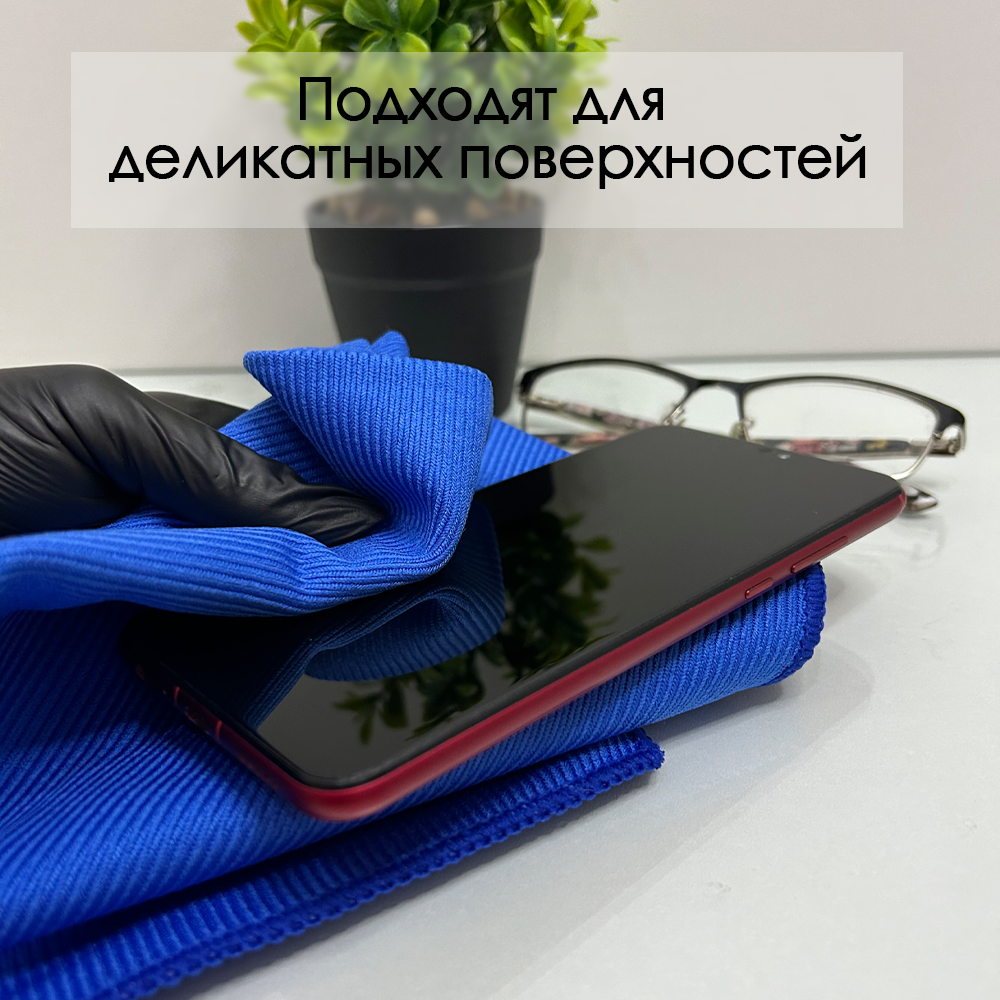 Салфетки для уборки из микрофибры универсальные, тряпочки для стекол и зеркал 30х30 см, цвет синий, голубой интересное: