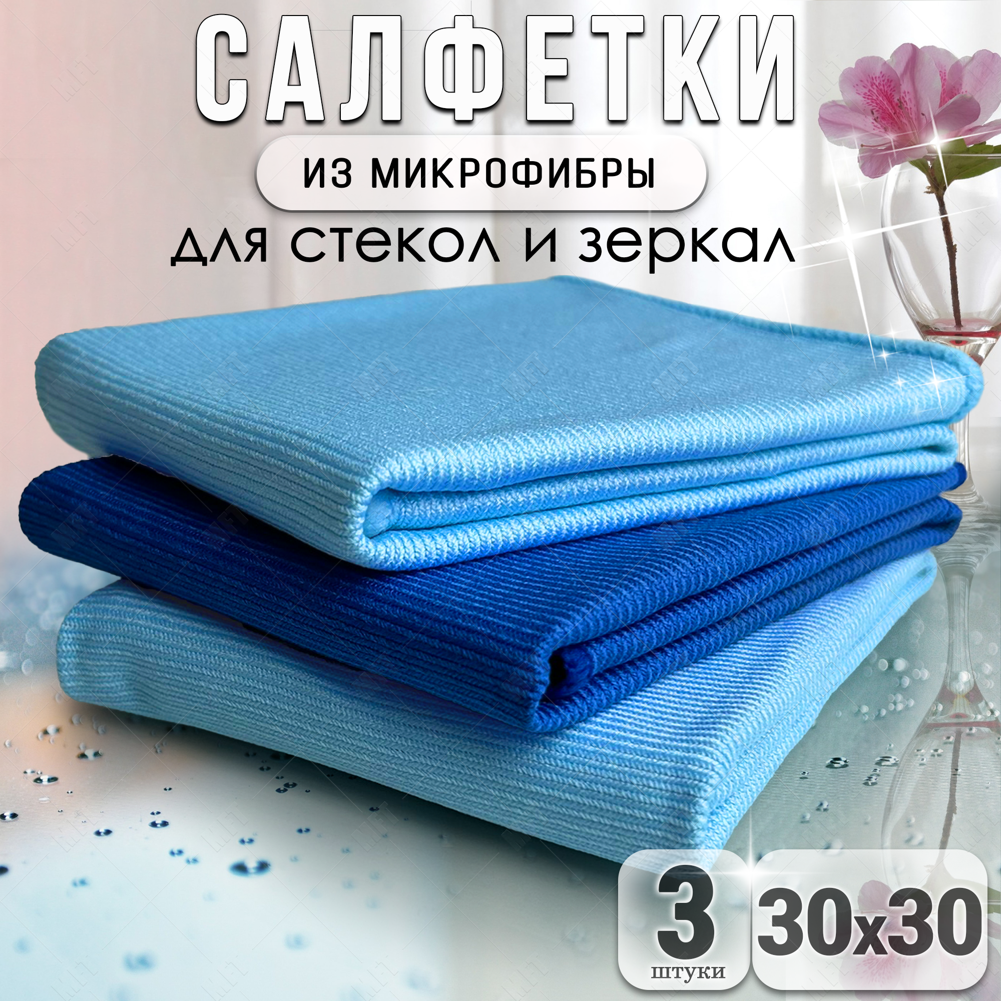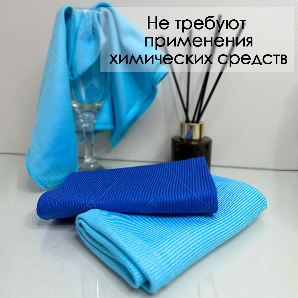 Купить Салфетки для уборки из микрофибры универсальные, тряпочки для стекол и зеркал 30х30 см, цвет синий, голубой