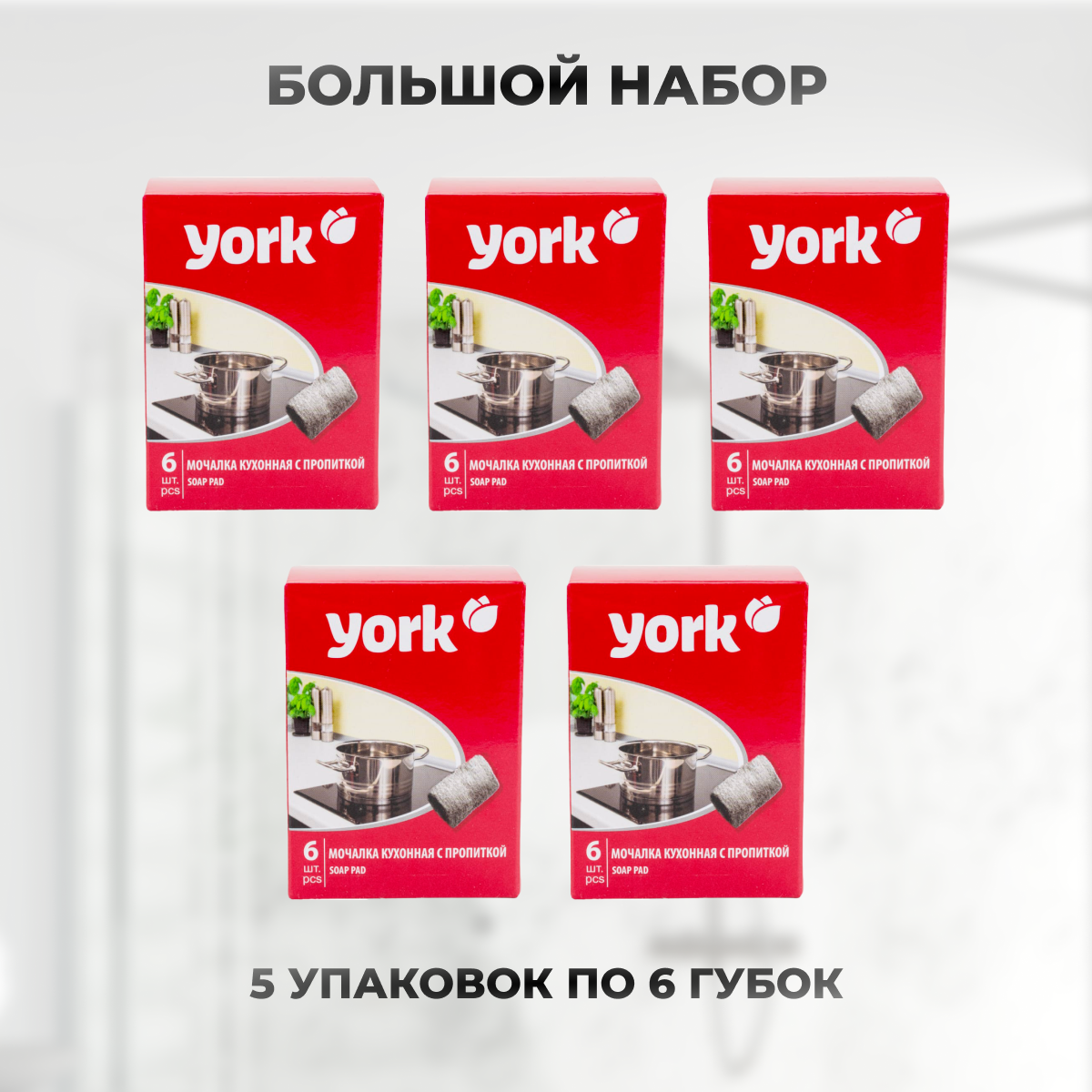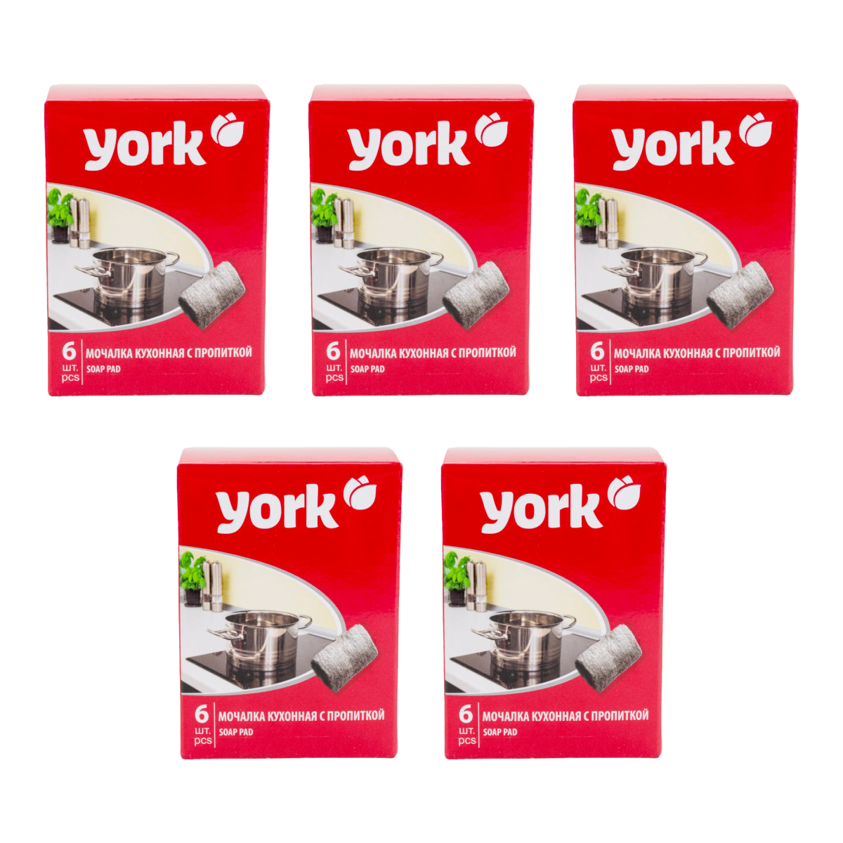 Купить Губки для посуды стальные York с пропиткой 5 уп по 6 шт