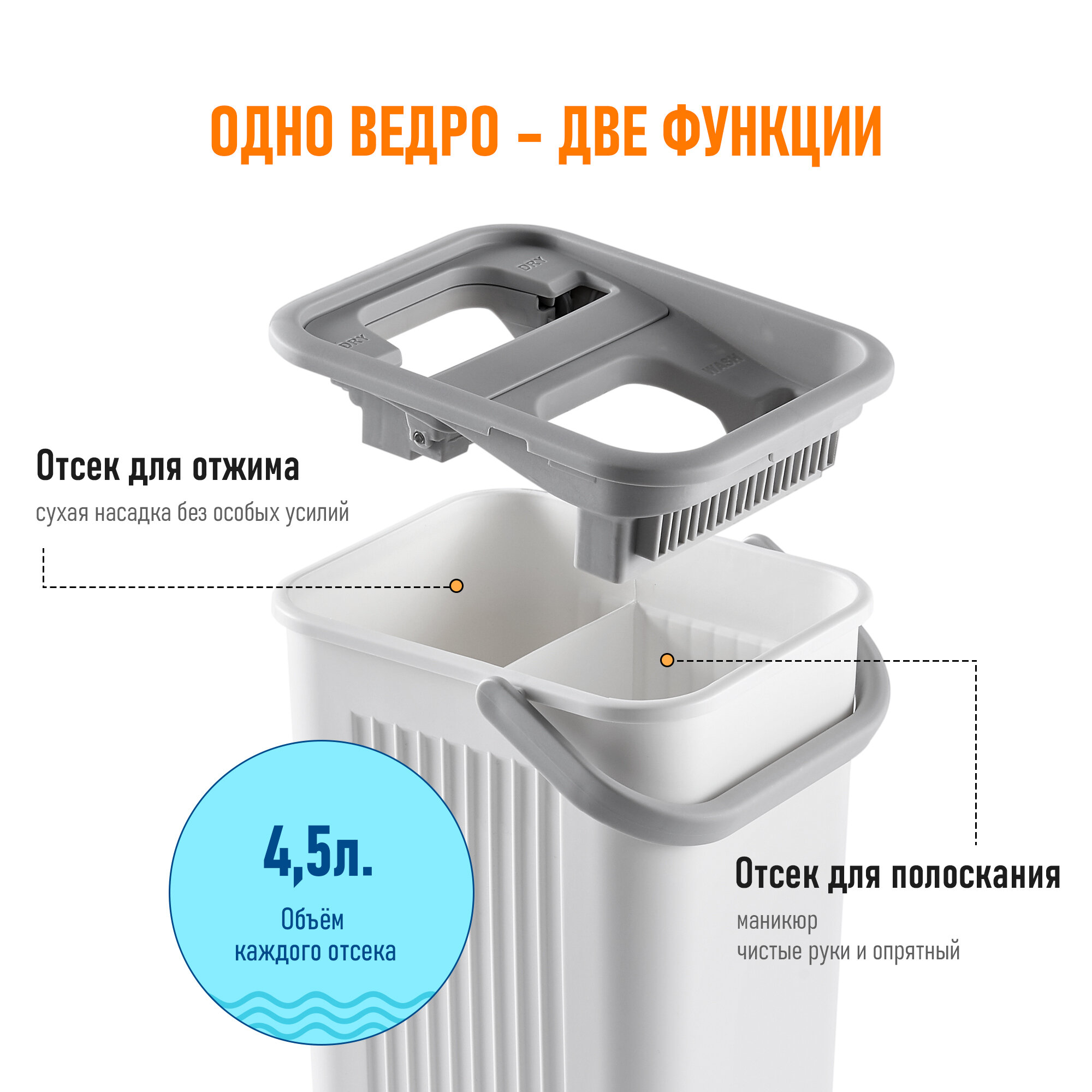 | Дополнительная информация | комплект для уборки, швабра, швабра лентяйка, швабра с вертикальным отжимом, швабра и ведро с отжимом, ведро 9 литров, моп |