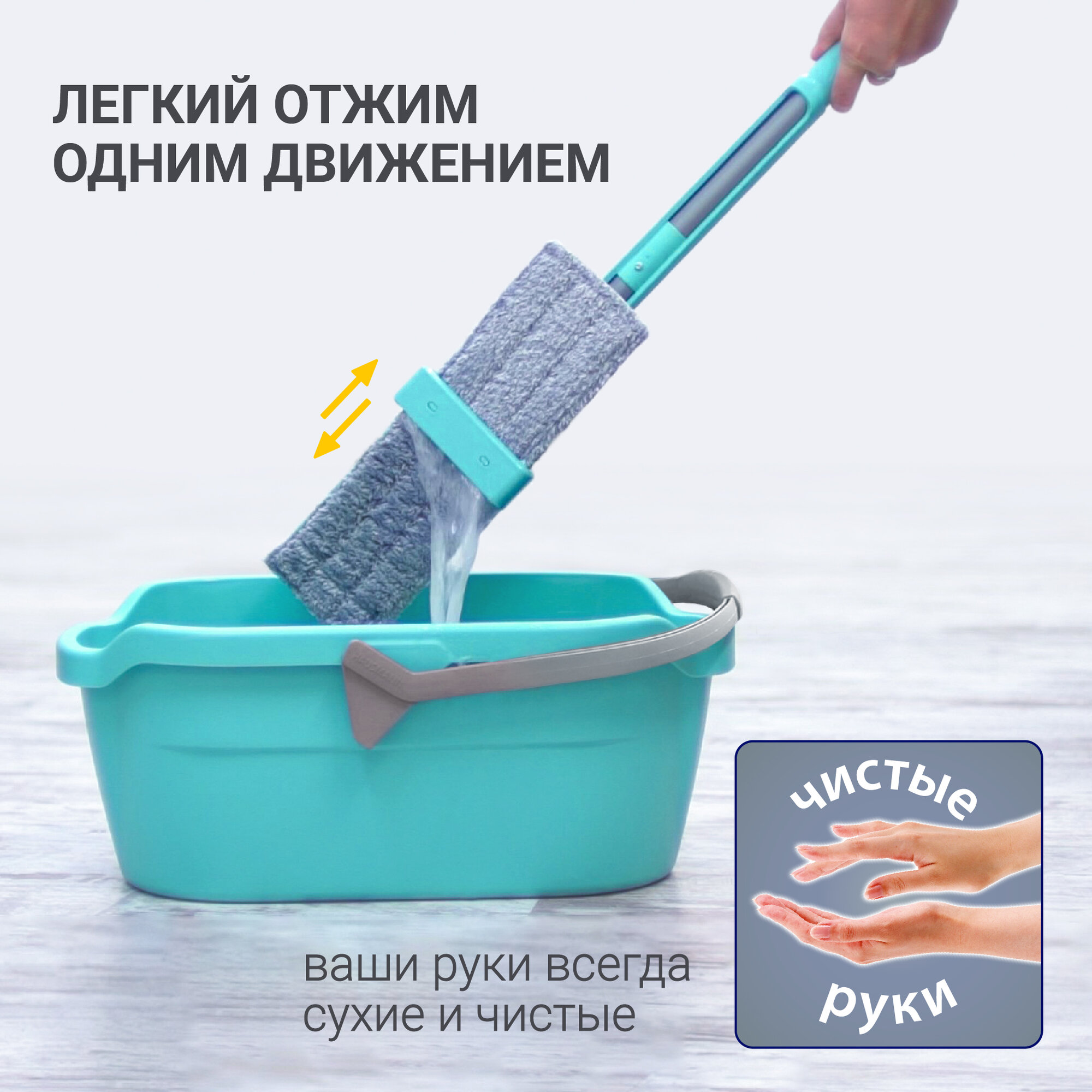 Швабра Hausmann Dry Hands Compact с механизмом отжима и нанопокрытием