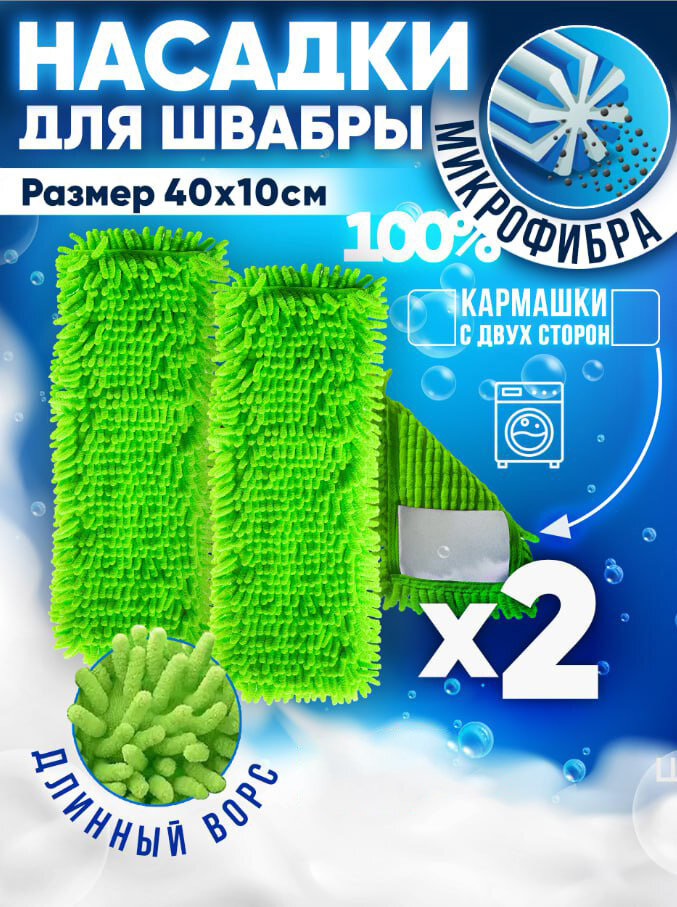 Насадка для швабры 40х10см микрофибра 2шт с длинным ворсом, Burrg