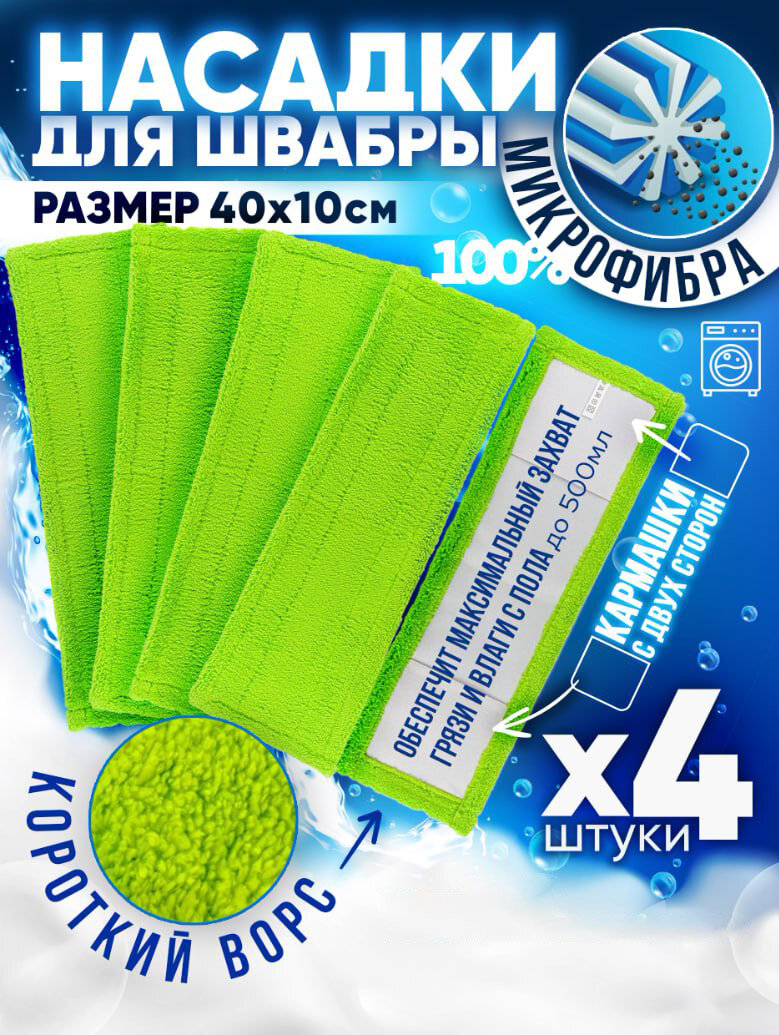 Насадка для швабры 40х10см микрофибра 4шт с коротким ворсом, Burrg