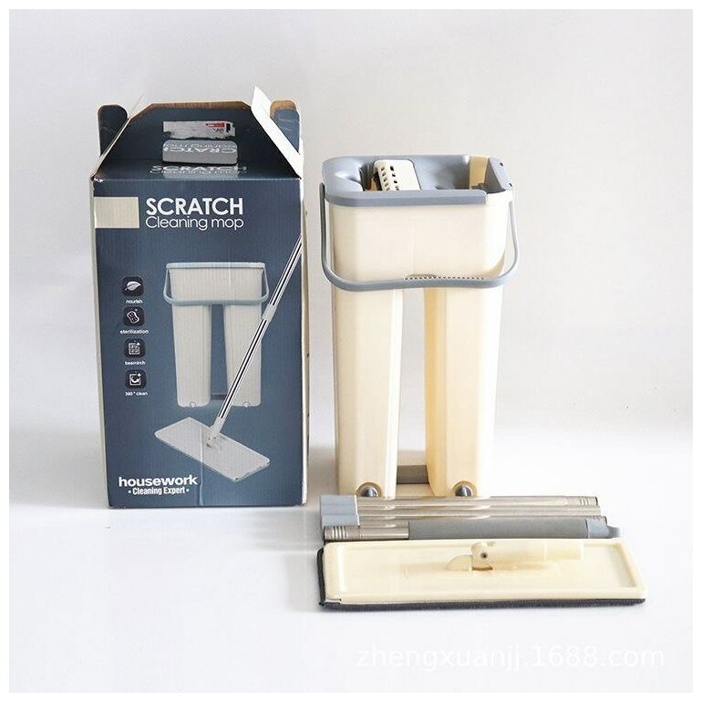 Купить Швабра и ведро с отжимом для уборки (Бежевый) 6л