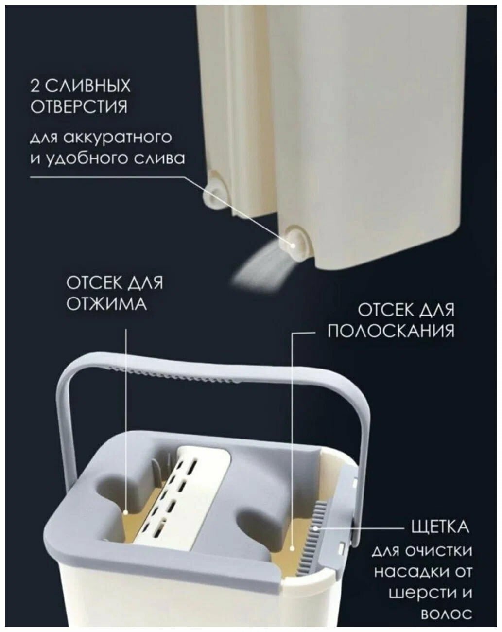 Швабра и ведро с отжимом для уборки (Бежевый) 6л интересное: