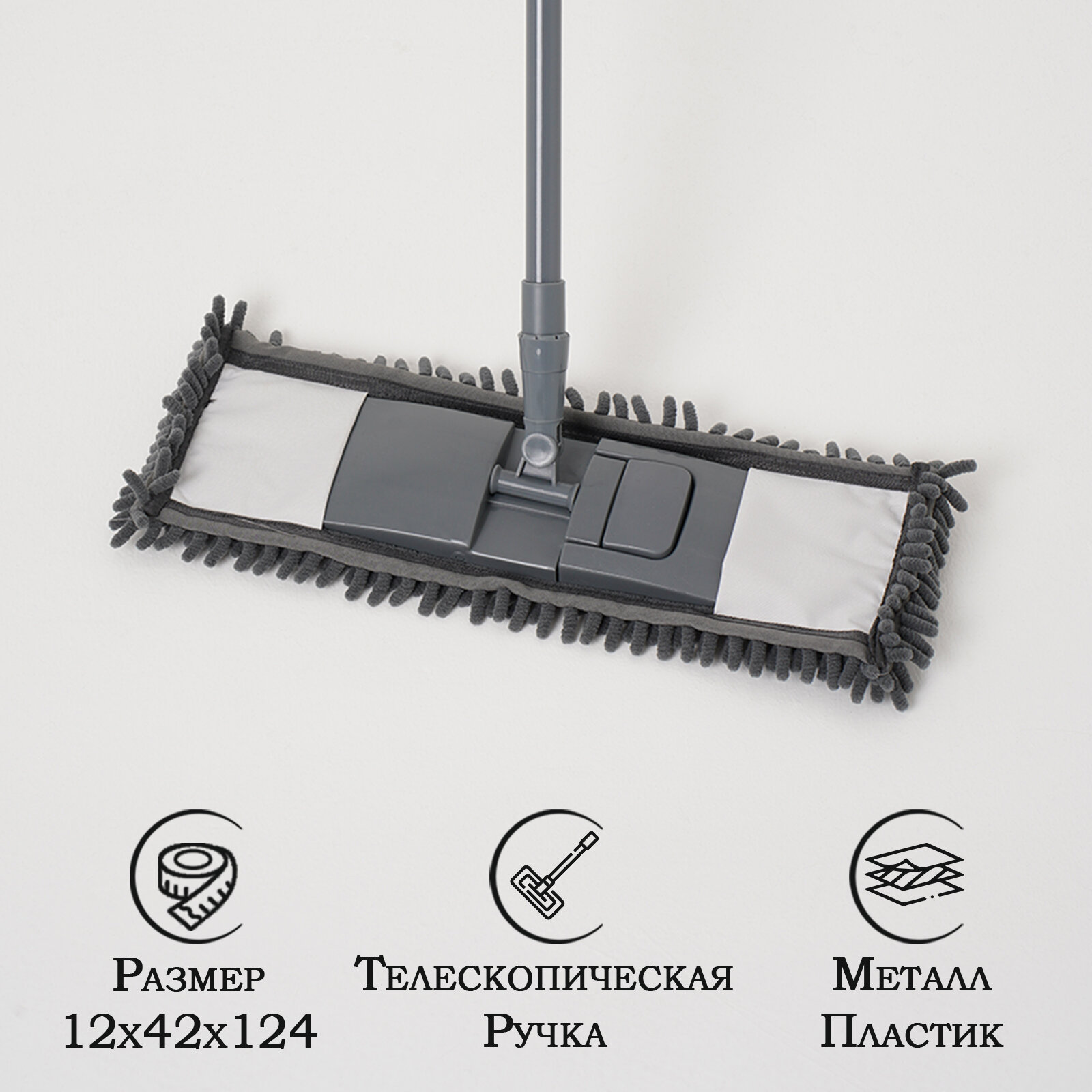Швабра для мытья пола плоская Доляна, насадка микрофибра букли 42×12 см, телескопическая ручка 70-120 см интересное: