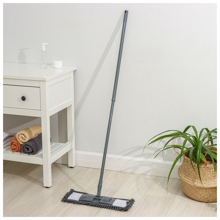 Купить Швабра для мытья пола плоская Доляна, насадка микрофибра букли 42×12 см, телескопическая ручка 70-120 см