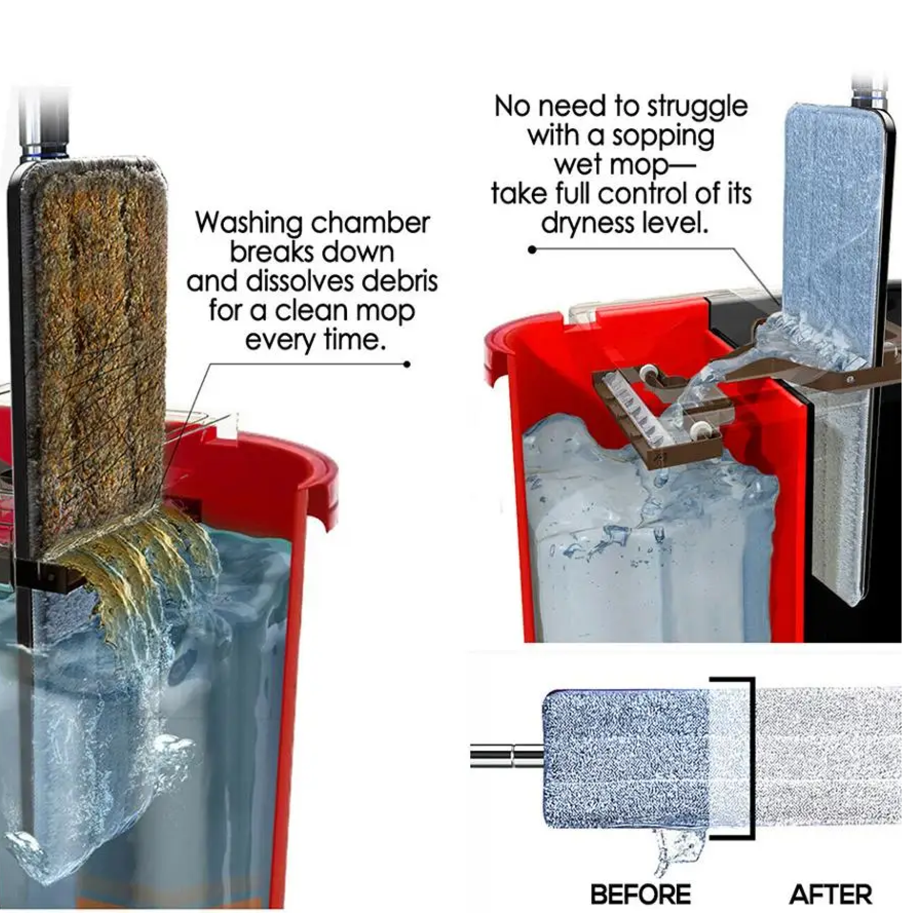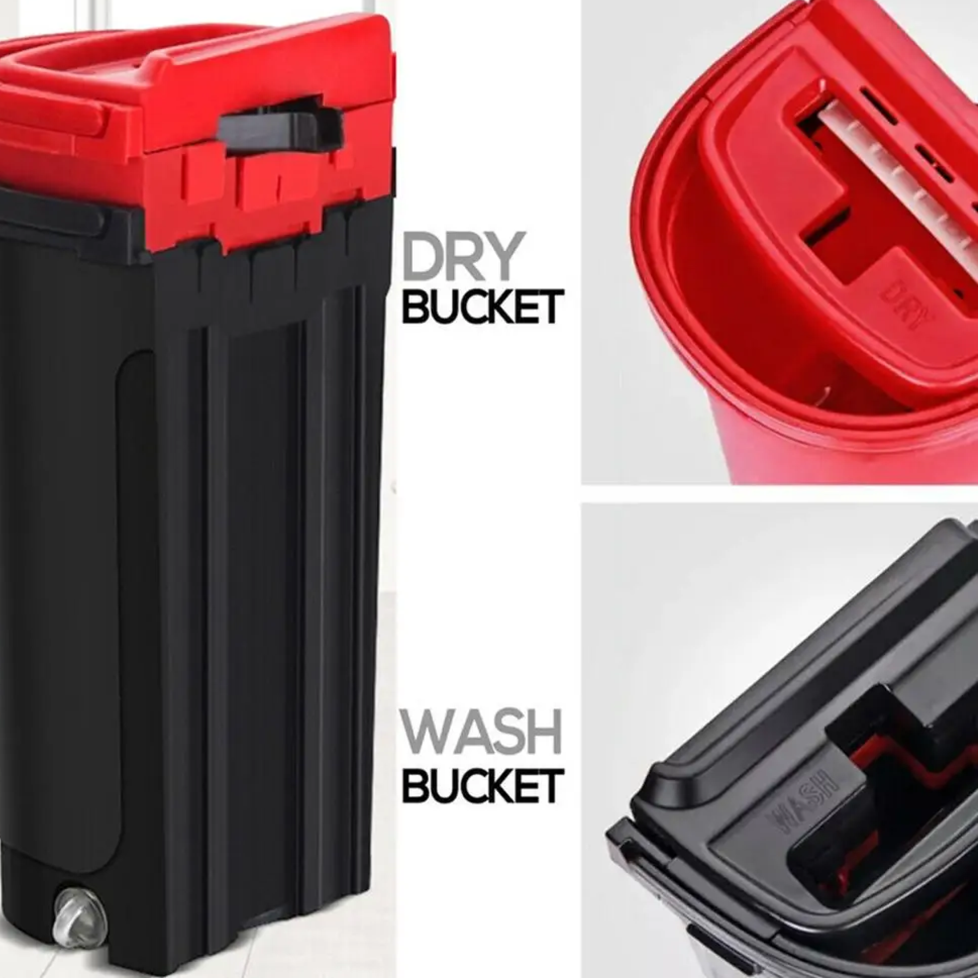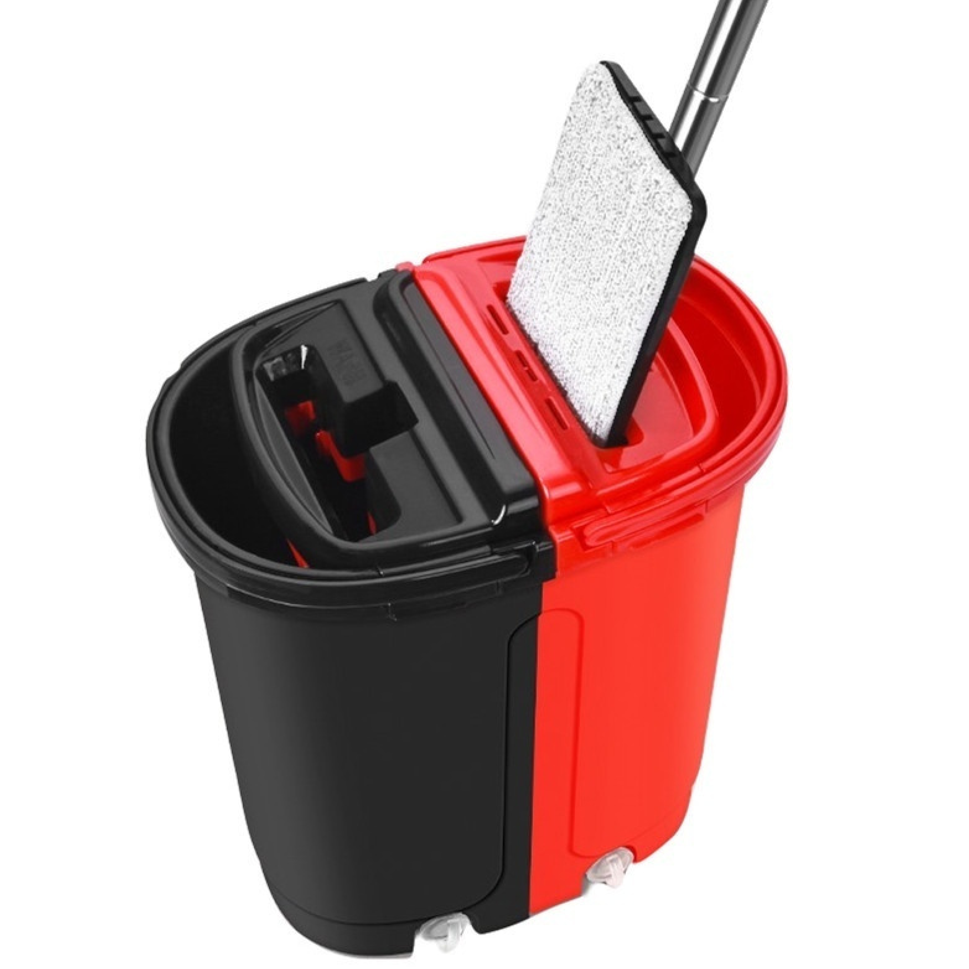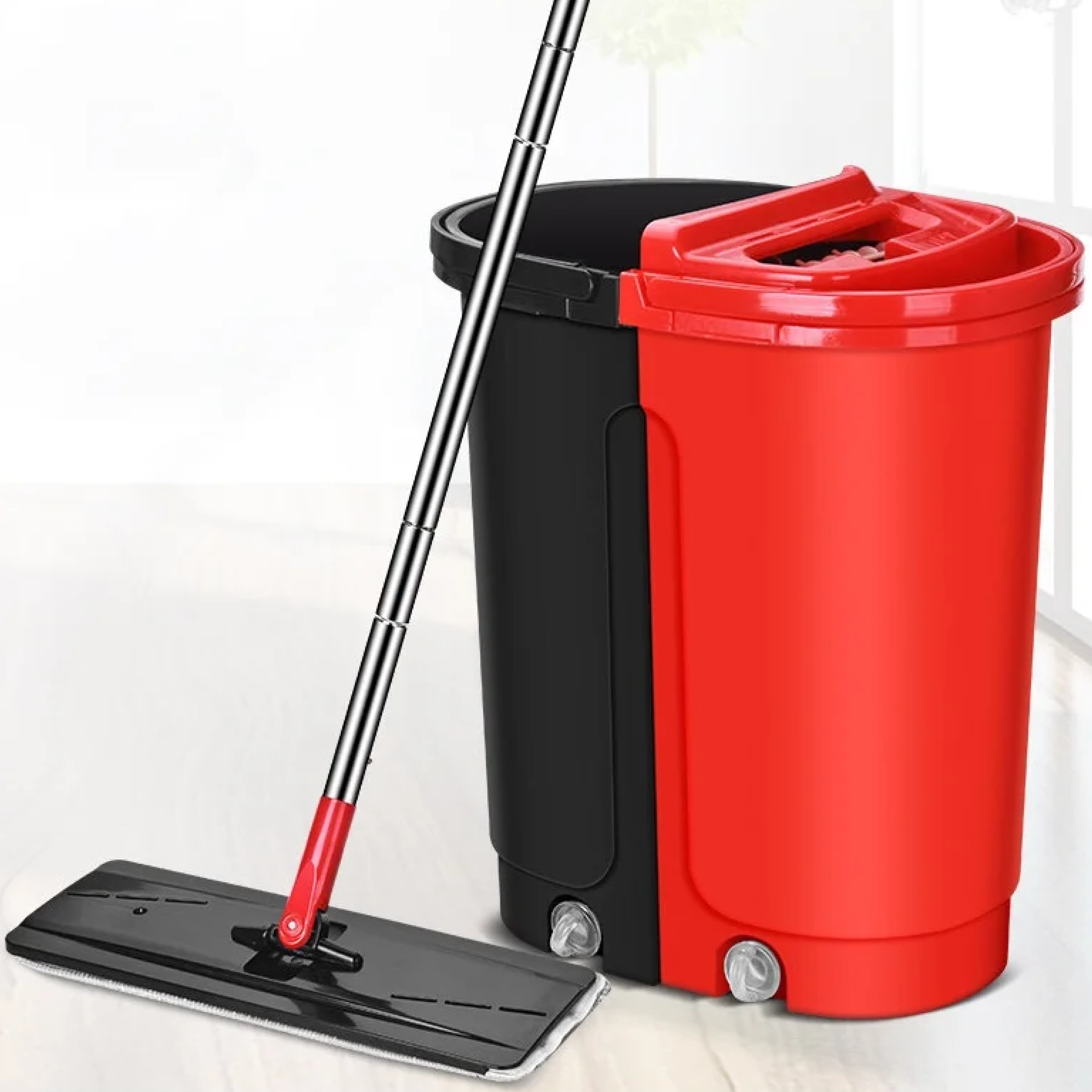 Купить Швабра 2 в 1 самоочищающаяся с отжимом с поворотом на 360 для мытья полов и окон / Черно красная швабра для уборки дома с двухкамерным ведром 6 л