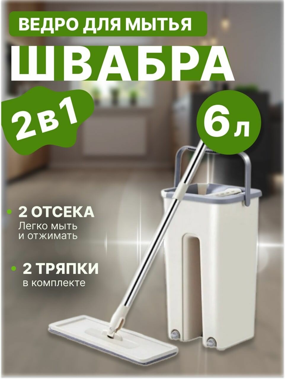 Швабра с ведром для отжима 6 литров интересное: