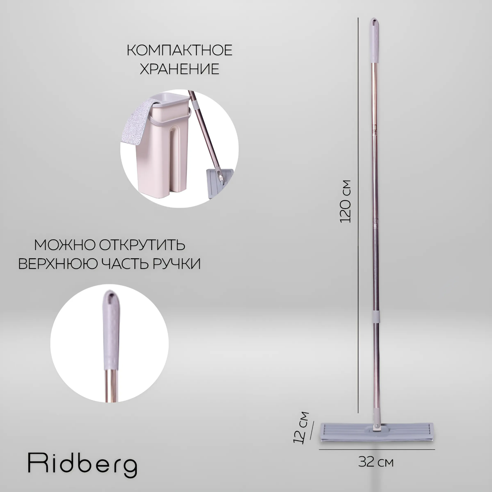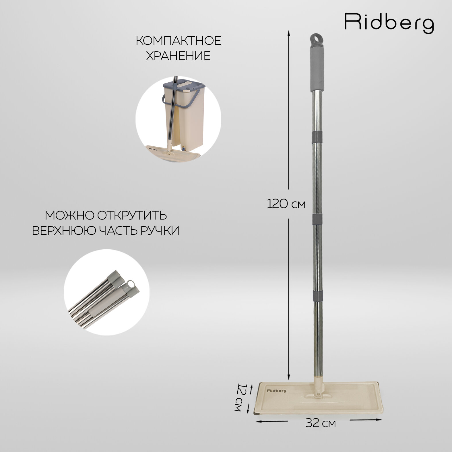 Швабра Ridberg с ведром для отжима Premium Plus (White) / 2 насадки в комплекте